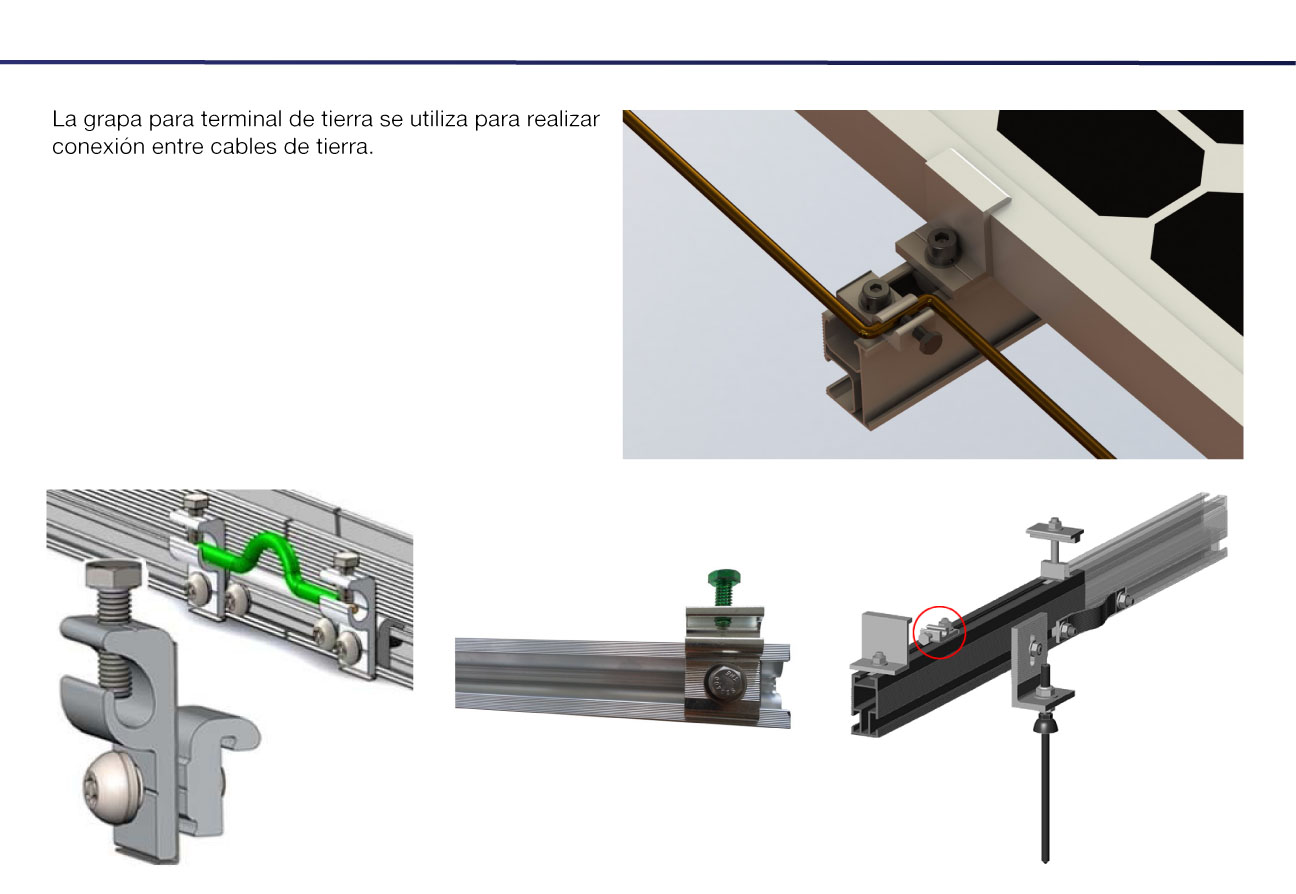 esta grapa se usa para realizar la conexión entre los cables de tierra del sistema, se ajusta al riel 7R.