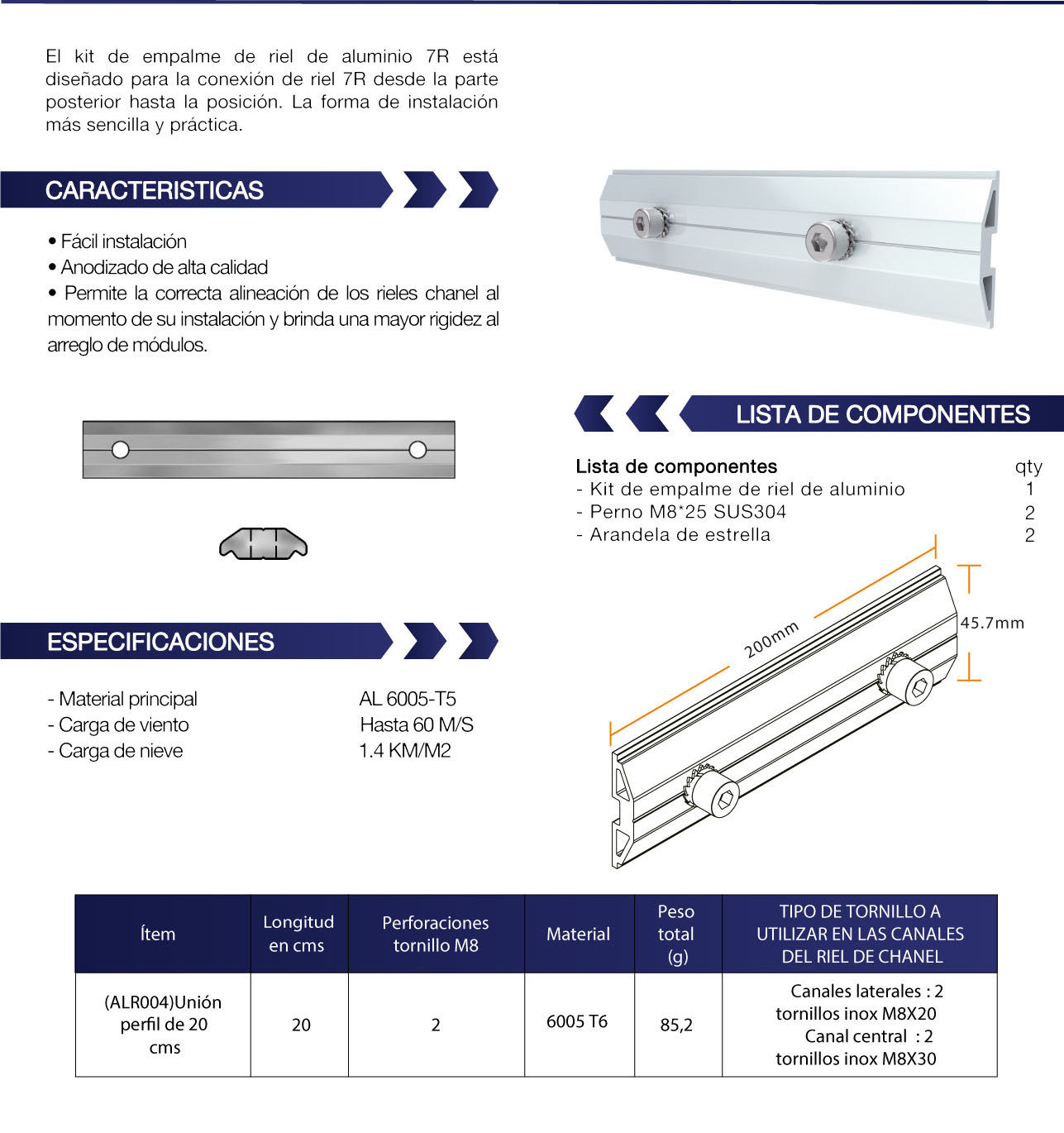 La unión de empalme de riel de aluminio 7R está diseñado para la conexión de riel 7R desde la parte posterior hasta la posición deseada. Con la forma de instalación más sencilla y práctica.