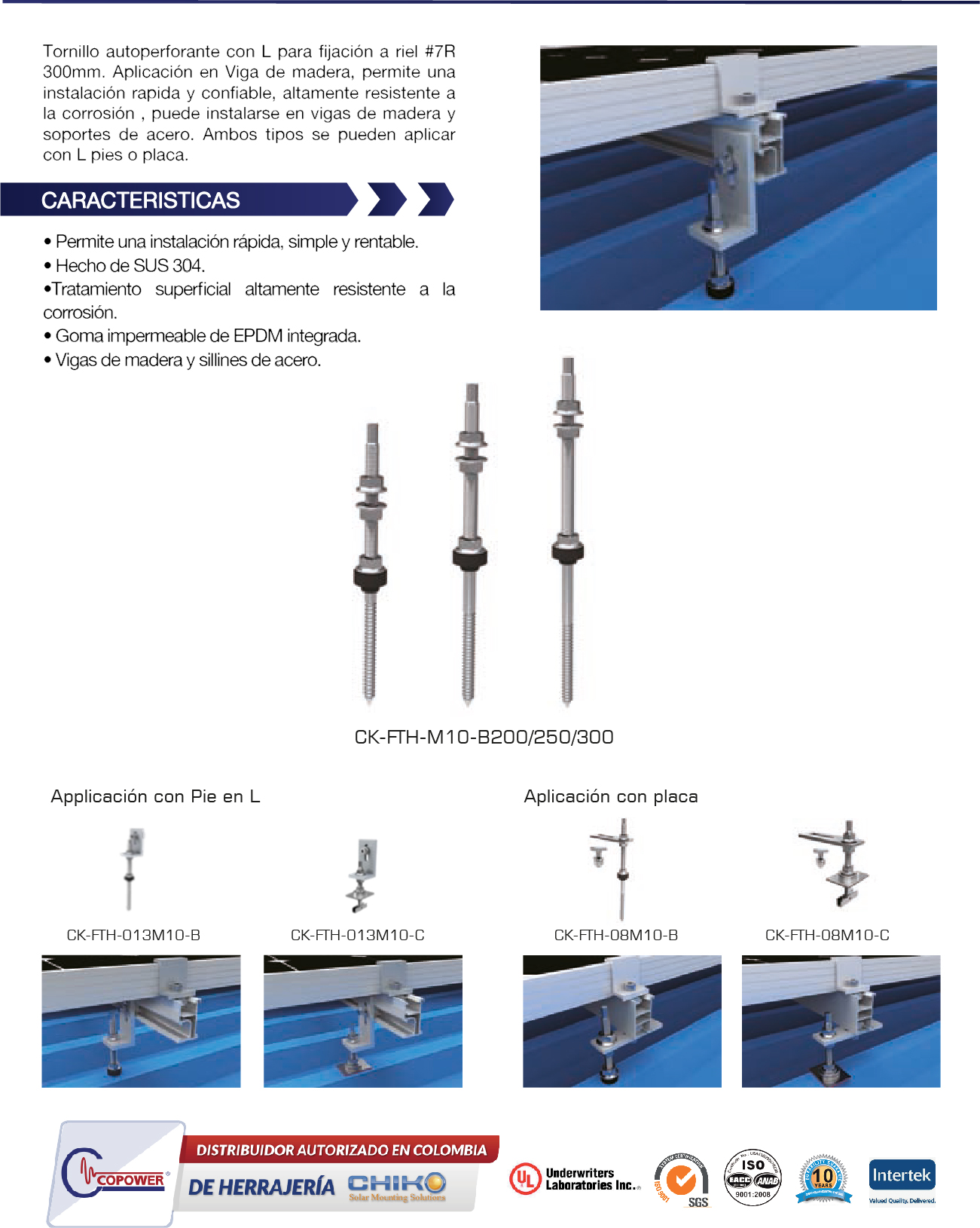 TORNILLO AUTOPERFORANTE CON L PARA FIJACIÓN A RIEL #7R 300MM. APLICACIÓN EN VIGA DE MADERA