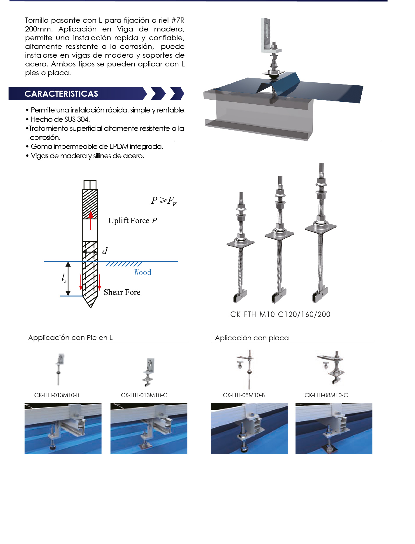 Tornillo autoperforante con L para fijación a riel #7R 200mm. Aplicación en correas metálicas, permite una instalación rápida y confiable, altamente resistente a la corrosión, puede instalarse en soportes de acero. Ambos tipos se pueden aplicar con L pies o placa.